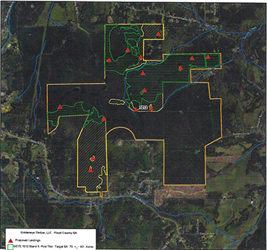 We have received notice that Tree cutting/thinning will take place at Watkins Gin. Trail cameras and stands should be temporary removed from the outlined areas.